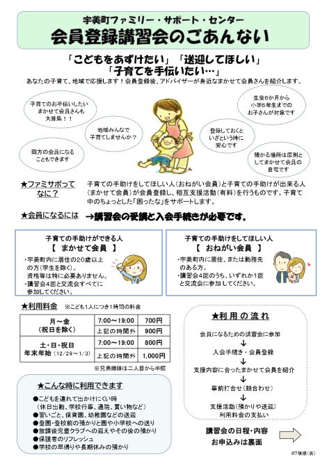 | ◇申込方法: 電話・FAXもしくは チラシの申込書をファミサポ窓口へ提出してください